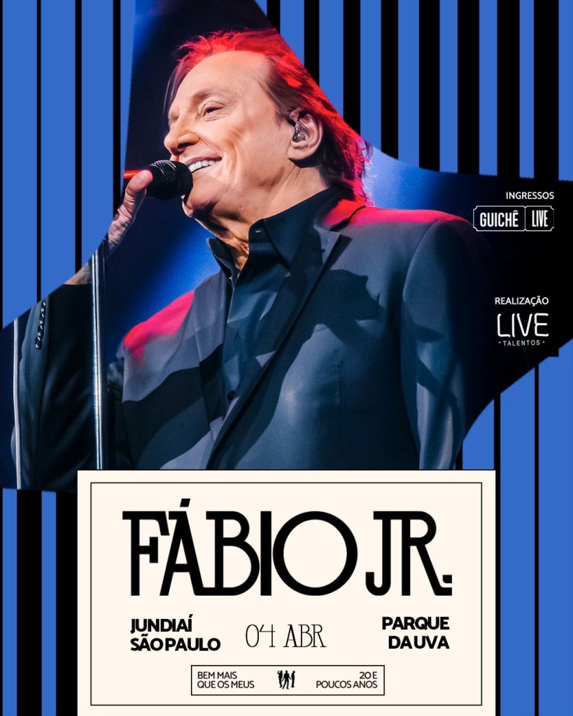 Jundiaí recebe no dia 4 de abril um dos maiores ícones da música romântica brasileira. Fábio Jr. sobe ao palco do Parque da Uva para uma apresentação especial, prometendo uma noite marcada por emoção, nostalgia e grandes sucessos que atravessam gerações.